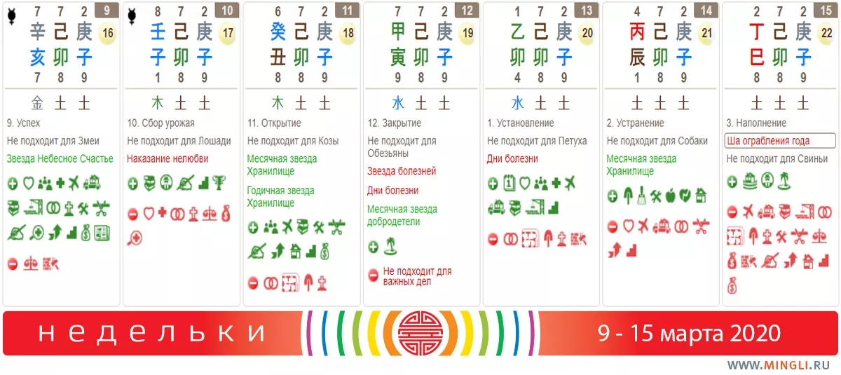 9 марта, понедельник. Очень благоприятный день, содержащий большое количество разных благородных звезд. Хороший день для свадьбы, начала бизнес-проектов, переезда в новый дом, путешествий, строительства. В течение 60-120 дней принесет неожиданное богатство, помощь и поддержку полезных людей. Очень благоприятен для исполнения любых планов. Сильным Металлам рекомендуем час Козы для начала дел, связанных с деньгами (заработать, а не потратить, конечно).
