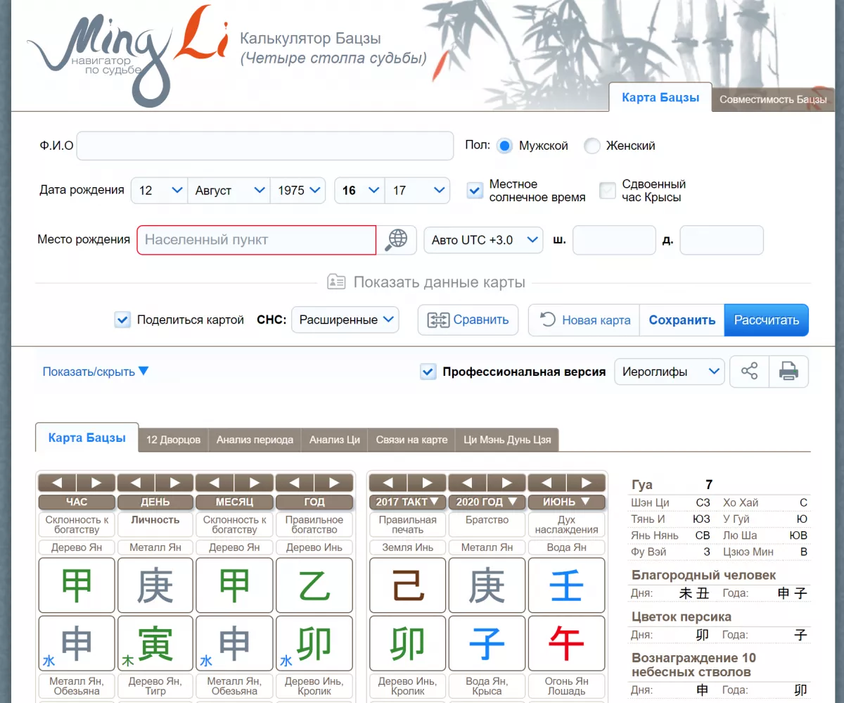 «Калькулятор бацзы не показывает саму карту, а только стропы удачи. Не работает?». Пожалуйста, читайте наши статьи об обновлениях! Там подробно описано, как справиться с такими проблемами. Как так, сайт несколько недель показывает ерунду, а вы нам не пишете?? Пишите сразу же, если что.