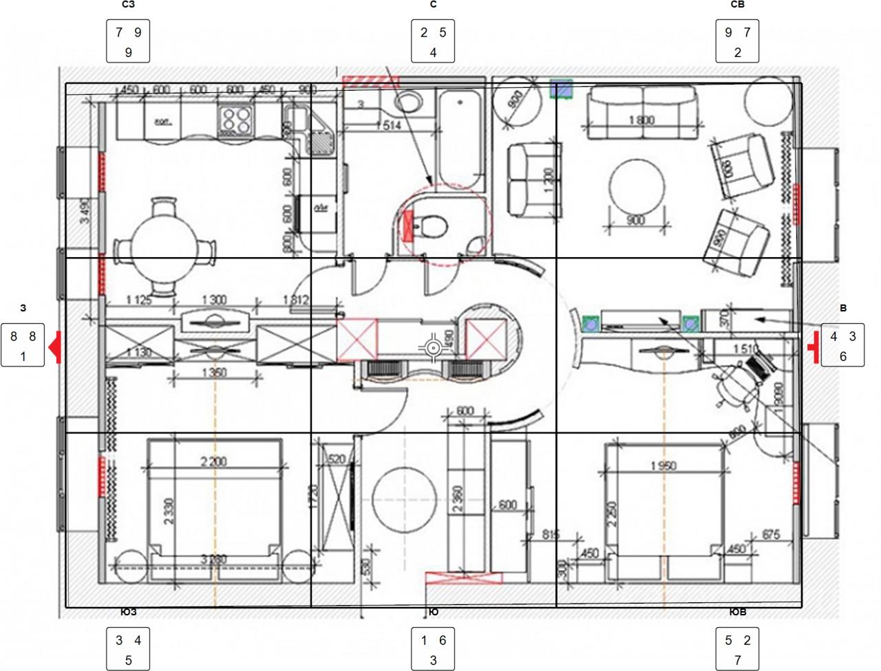 Нам нужны будут 2 замера – направлений восьми сторон света, тех самых, что мы все изучали на географии. И более точный замер двери – тут нам будет надо определиться с одним из 15-ти градусных секторов, их еще обычно называют «горы».