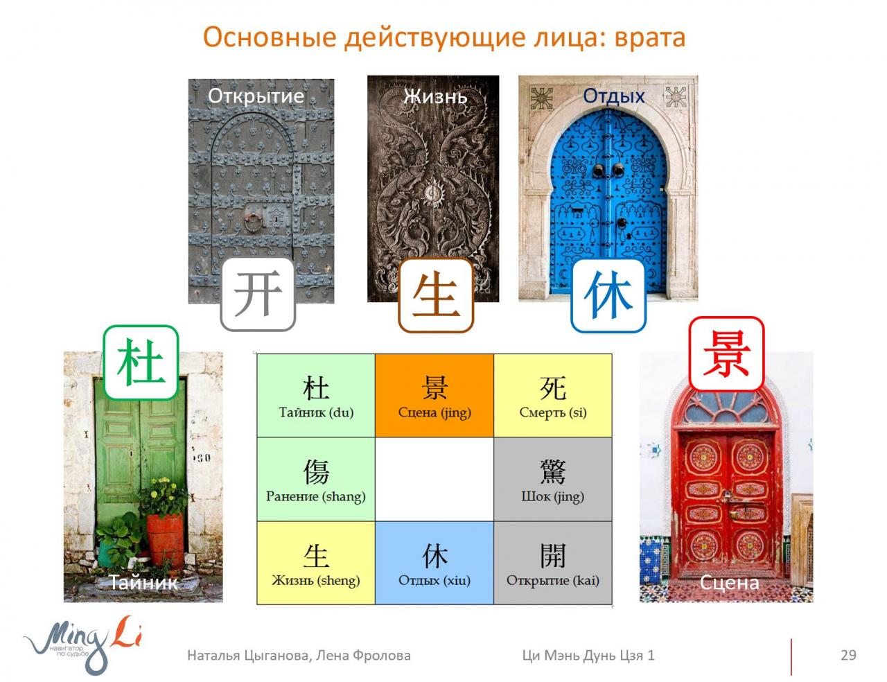Врата – это человеческая ци, которая активизируется при движении. Если вы отправились куда-то по Ци Мэнь, поехали или пошли, то в первую очередь активизируете врата. А они несут нам совершенно разную энергию и выбирать их надо не по цвету. «Зелененькие» врата как раз не самые благоприятные.