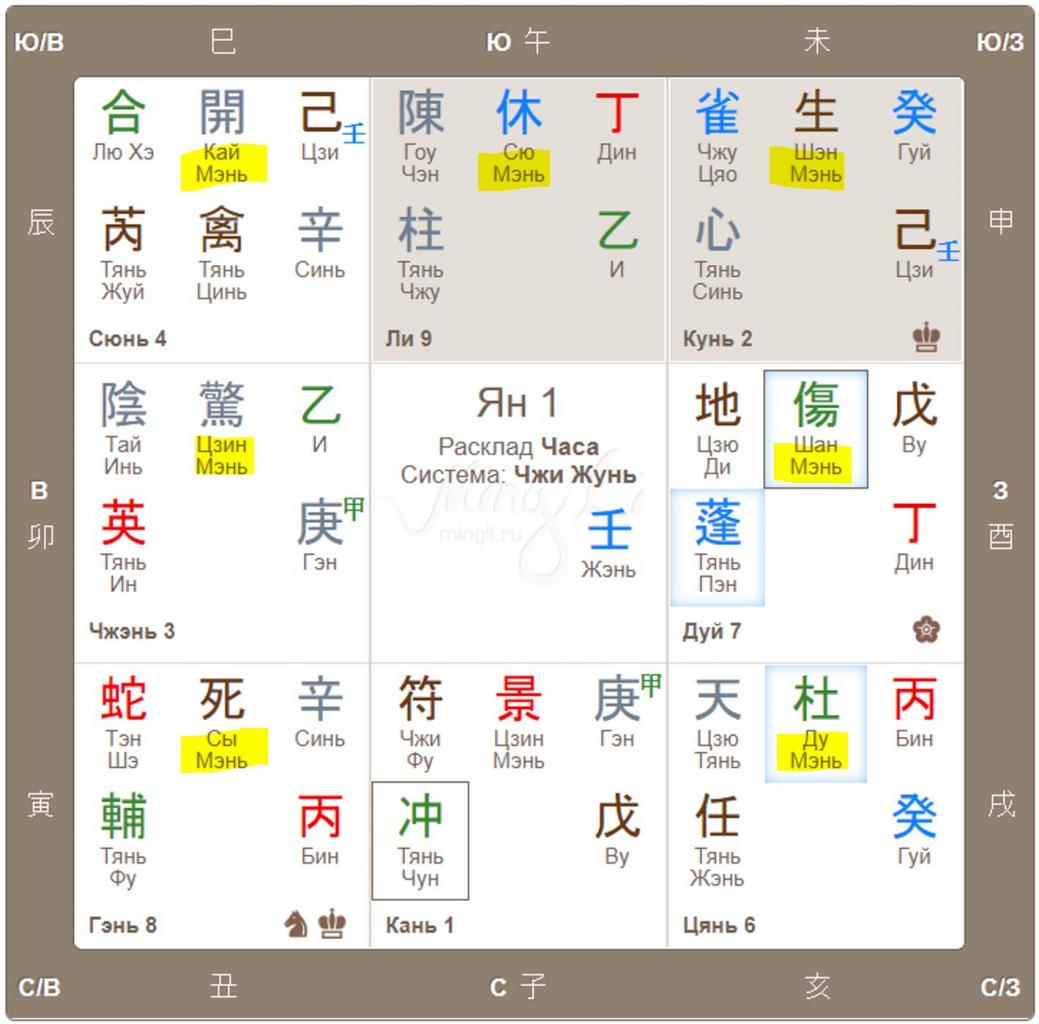 Если вам все понятно, можете посмотреть также, чтобы врата не были разрушены (есть в описании дворца) и выбирать то направление, в котором есть Джи Фу 符 или Мистики 丁丙 или 乙. И время выбирайте местное солнечное в своем городе.
