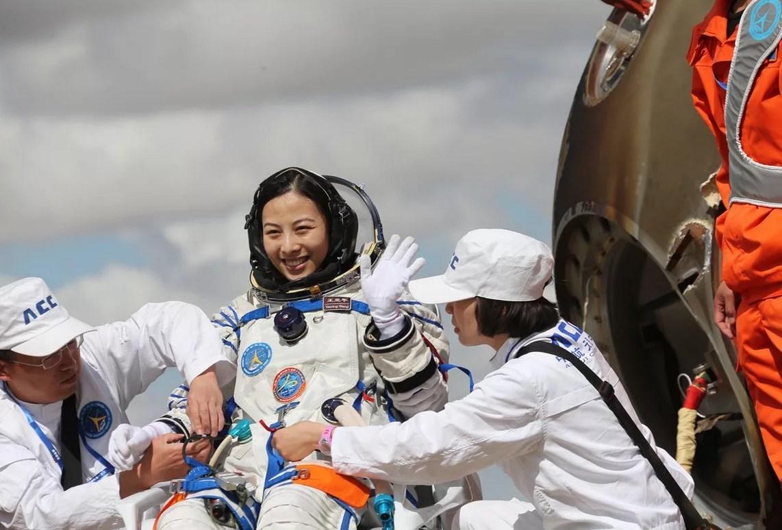 16 апреля 2022 года произошла трогательная встреча китайских космонавтов. Ван Япин встречали ее муж и дочка.