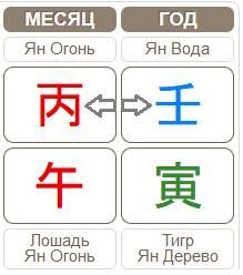Давайте посмотрим подробнее. Столп месяца Огонь Ян на Лошади — Солнце в зените, очень жаркое, пик активности, по кругу порождения Вода питает Дерево, и Тигр всю свою мощь отдает Лошади. Янский Огонь отражается от водной глади, и рассыпается миллионами солнечных зайчиков, усиливая блеск огня, умножая его.