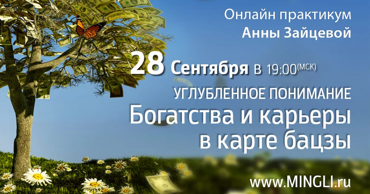 28 сентября в 19:00 состоится практикум профессионального модуля Бацзы: Углубленное понимание богатства и карьеры в карте Бацзы. На нем мы будем разбирать ваши примеры и вопросы по данной теме.