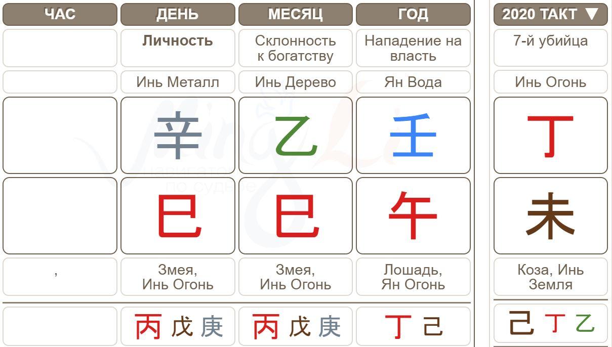 Фома родился 13 мая 2002 года в день иньского Металла в месяц Змеи. В его карте очень сильный Огонь – две Змеи и Лошадь. С детства он идет по столпам удачи с сильным огнем, а с 18 лет к Змее и Лошади в его карте приходит Коза: собирается сезонная комбинация Огня. Мощный, неудержимый поток Огня бушует в карте! Конечно, это карта следования за Властью.