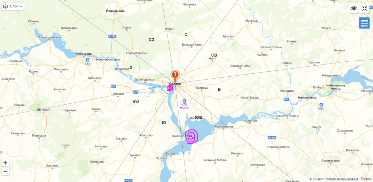 Давайте посмотрим на карту Казани и окружающей ее местности.