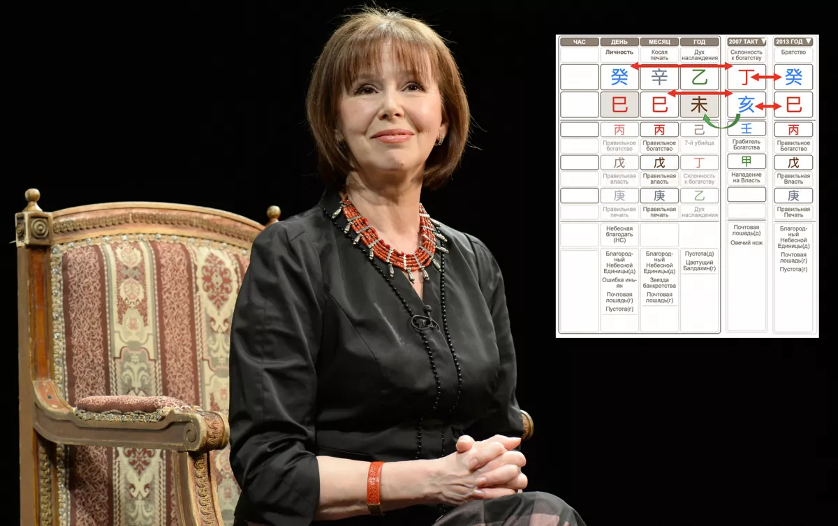 В карте Бацзы Металл проявлен, ослаблен и находится под столкновением, а это значит, что легкие от природы - слабый орган. К тому же актриса, как она говорит, «покуривала»: «курила две сигареты в день, иногда могла неделю, две, не курить». Что ухудшало состояние ее легких.