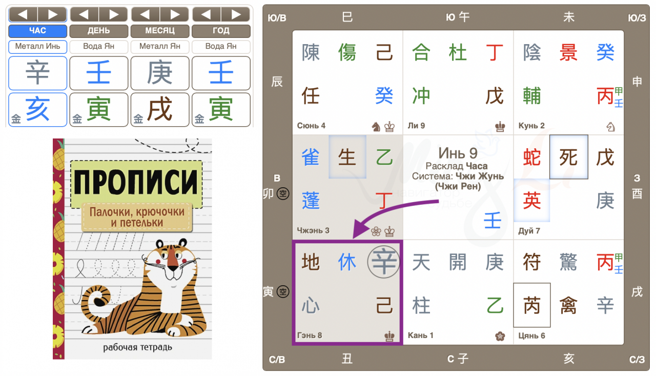 Открываю карту, а там НС часа 辛 Синь (дело – потеря) в Пустоте. Но я не отчаиваюсь – есть вероятность, что Пропись просто лежит где-то, где достаточно пространства.