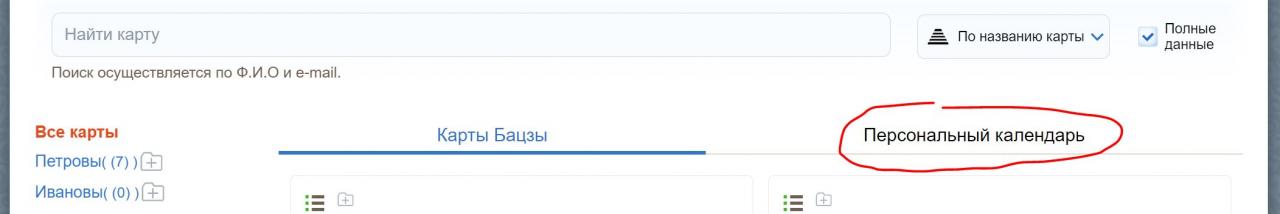 Также карты, для которых вы считаете Персональный календарь, вы тоже можете увидеть в этом разделе, во вкладке Персональный календарь: