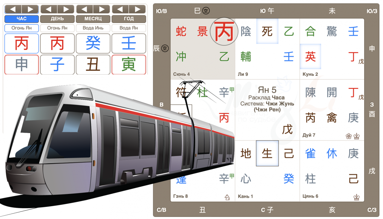 Небесный ствол часа 丙 – это дело, о котором я спрашиваю – возвращение подруги. Небесный ствол часа 丙 опустился во дворец Сюнь.