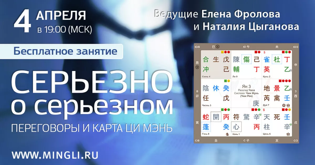 04.04.23 в 19:00 (по Мск) состоится открытый вебинар по Ци Мэнь Дунь Цзя «Серьезно о серьезном», посвященный прогнозам.