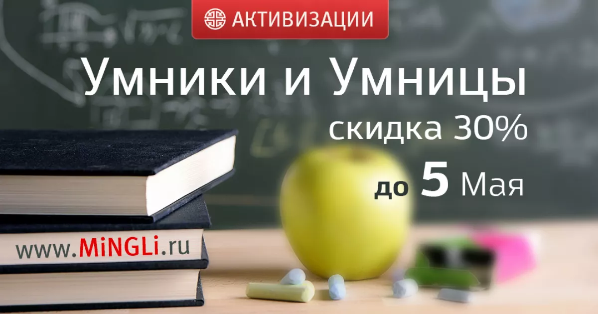 - Активизации Умники и умницы (даем вам на нее скидку 30% до 5 мая!)