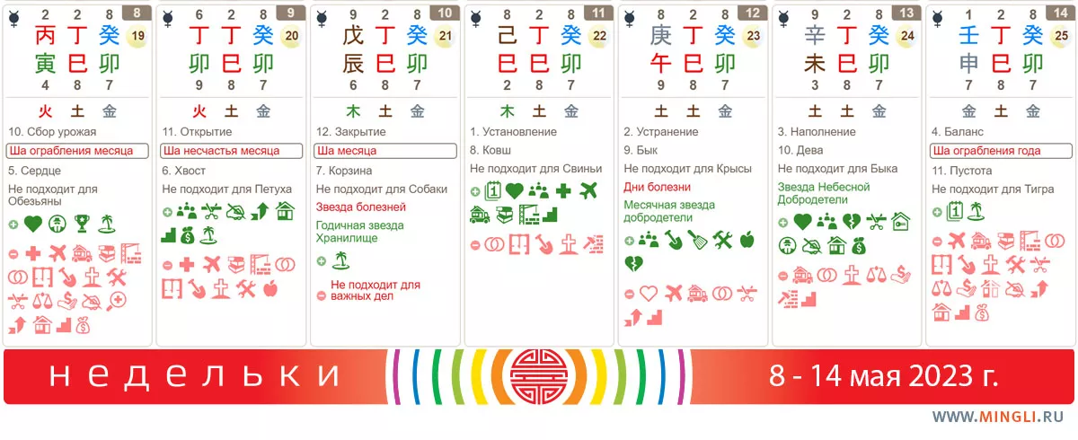 14 мая, воскресенье. Не стройте, не путешествуйте, не устраивайте свадьбы, не переезжайте в новый дом. Нарушение этого правила приводит к судебным искам, спорам, неприятностям. Лучше всего использовать для планирования.