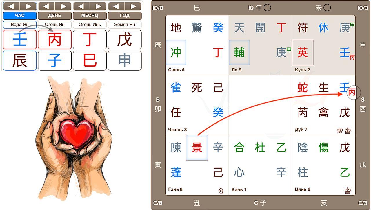 - Второе ограничение. Ствол 丙 вышел из центра и оказался вместе со стволом Жэнь 壬. С точки зрения здоровья конфликт стихии Огня и Воды может быть индикатором проблем.