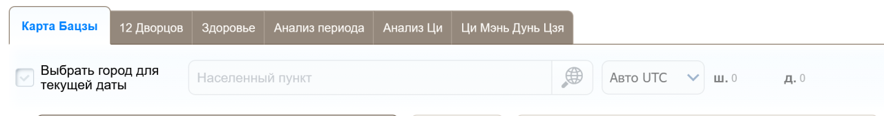 В калькуляторе бацзы для текущего такта и текущих столпов добавили возможнсть выбрать город проживания для учета попрвки на местное солнечное время.