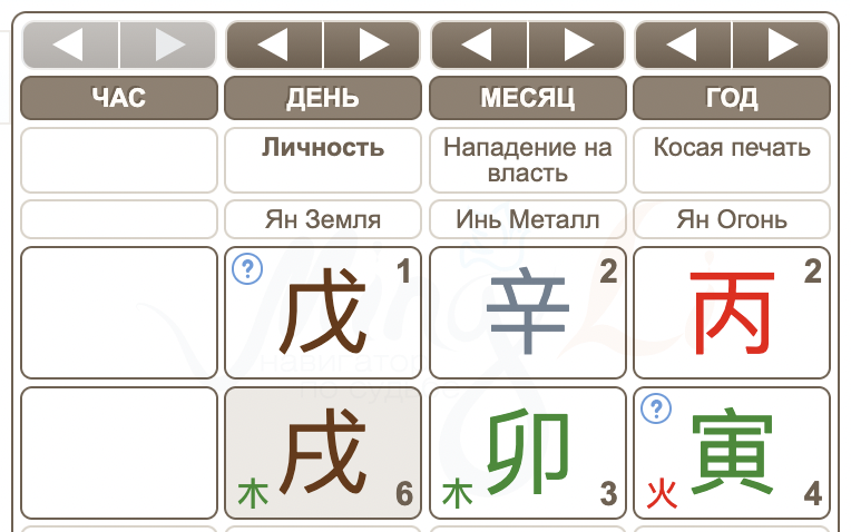 А что есть НЕ по здоровью: 1 – слабая Земля Ян; 2 – хорошая переносимость Власти, способность к управлению собой; 3 – Куйганг (столп дня) – упорство, умение перебарывать обстоятельства только упрямством.