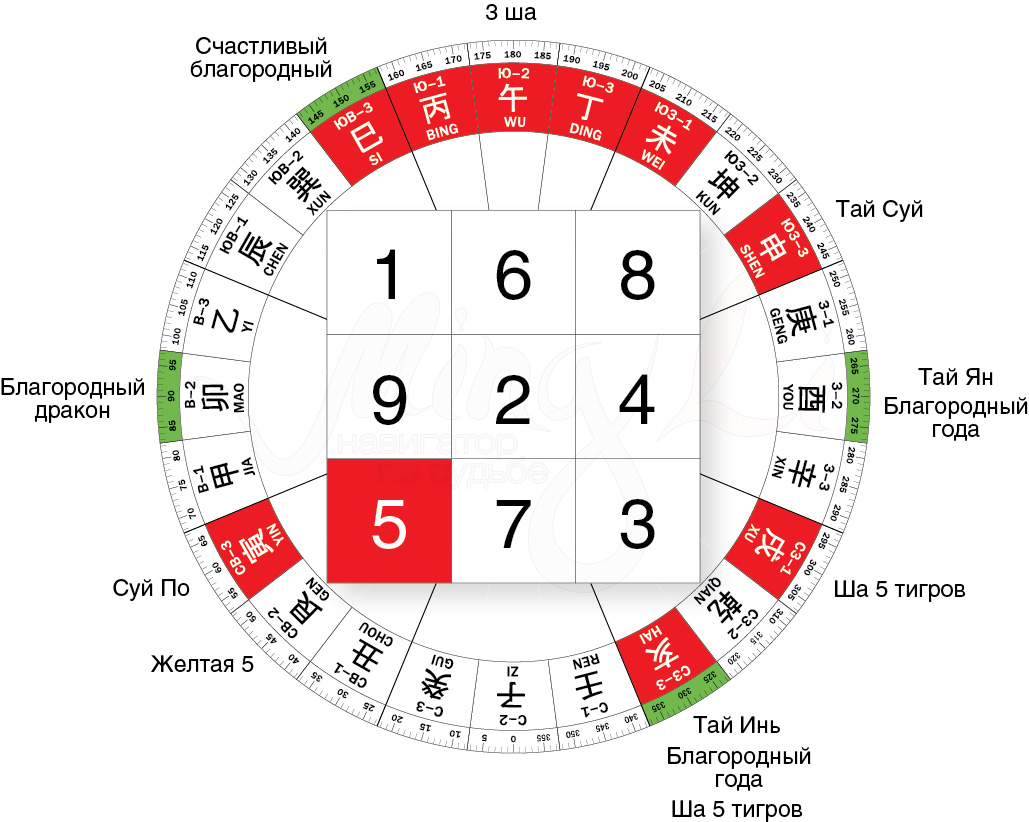 Главная энергия года, Князь Года или Тай Суй, располагается на юго-западе 3.