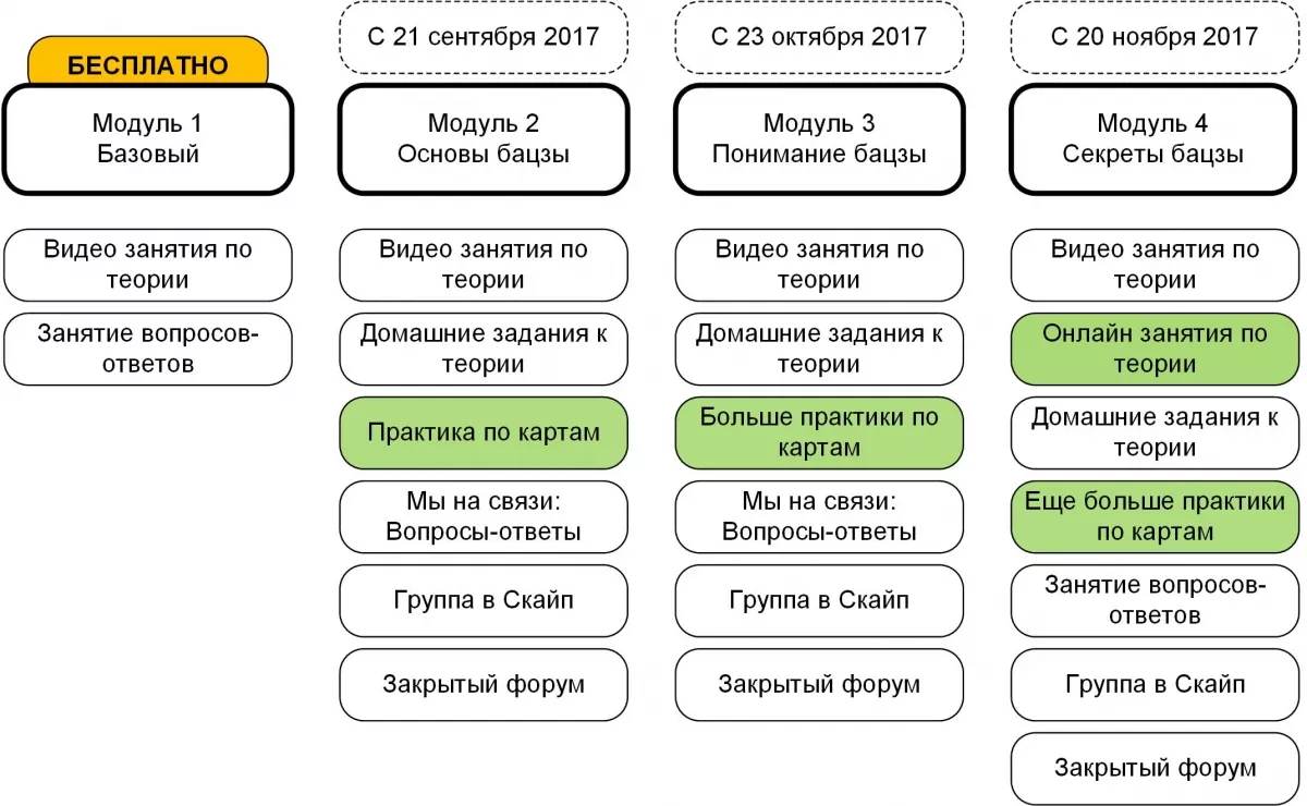 А вот с 21 сентября уже начнется обучение на модуле 2 - Основы бацзы.