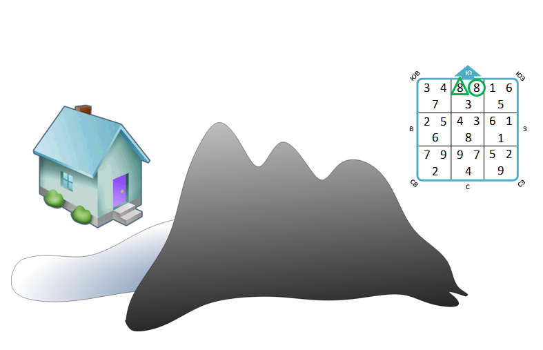 Для расчета карты летящих звезд берется гора фасада. Гора – это 15-ти градусный сектор, всего таких гор – 24. То есть, когда вы измеряете дверь дома, стоя рядом с ней, вам надо определить, в какую гору попал фасад здания.