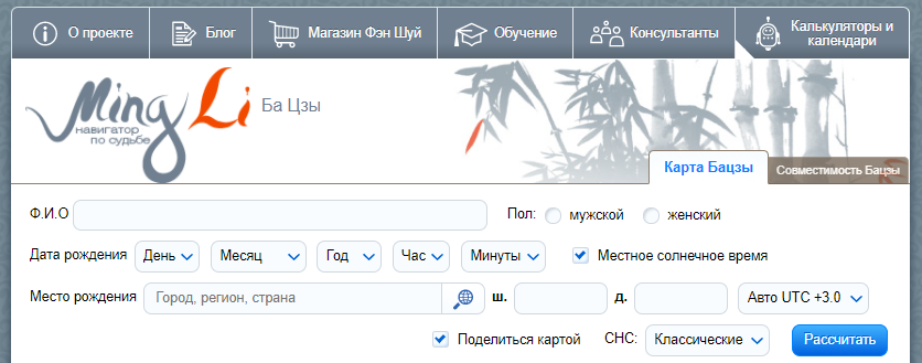 - Рассчитайте свою карту бацзы