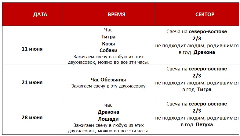 В указанное время и в указанном секторе нужно зажечь свечу. Я беру толстые свечи, которые горят много часов – они устойчивые и не сильно оплавляются. Свеча должна гореть 1,5 часа, но можно оставить и до конца суток (это эффективнее).
