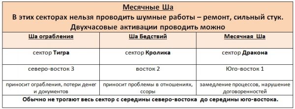 Северо-восток. «Единица» месяца усиливает «нефритовую тройку», что может способствовать довольно агрессивному поведению, спорам, болезням печени и головокружениям. Но в целом, сектор неплохой, если использовать его потенциал в свою пользу. Для тех, кто проводит здесь много времени, важно контролировать свои эмоции. Поэтому достигайте свои цели без перенапряжения, умея вовремя остановиться, оценить обстановку. Помните, что здесь располагается три Ша года и месяца, старайтесь не нарушать целостность стен ремонтом.